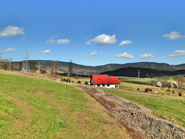 Im wyżej, tym robi się ładniej, przestronniej. Teraz mogę podziwiać stok Niedrzwicy, po którym wcześniej wędrowałem, w oddali Grabinę i w dole ten fotogeniczny wiadukt.